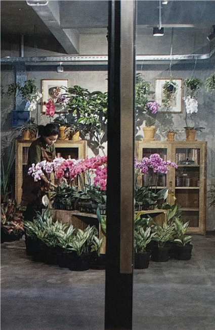 Anak tangga membawa dewi masuk ke bangunan Aksen Domisili. Sekilas, banyak orang mungkin bingung, bangunan apakah ini. Apakah sebuah galeri, tempat menjual tanaman, atau kantor yang mendekor bangunannya dengan tanaman-tanaman hias. Berlokasi di Sawah Besar, Jakarta Pusat, Aksen Domisili mendeklarasikan dirinya sebagai ruang kreatif yang didedikasikan untuk tanaman dan seni dalam segala bentuk. Walau Anda dapat menemukan banyak jenis tanaman di sini, Aksen Domisili berfokus pada anggrek.