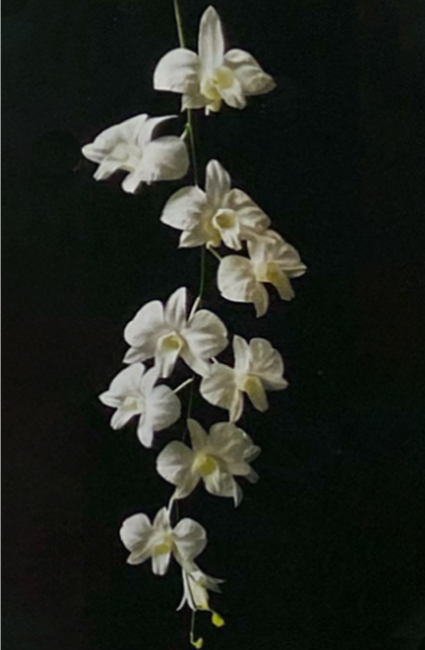 Tanaman tumbuh sentosa di lantai atas dengan sinar matahari melimpah dan sirkulasi udara lancar. Selain D. stratiotes forma alba, ia juga mengoleksi D. antennatum dan D. striaenopsis. Keduanya sama-sama alba. Antenantum alba mempunyai petal, sepal, dan labellum berwarna putih. Tanduknya melintir kuning kehijauan. Penampilan striaenopsis juga tak kalah istimewa. Seluruh bagian bunga dendrobium dari seksi phalaenanthe itu berwarna putih bersih.